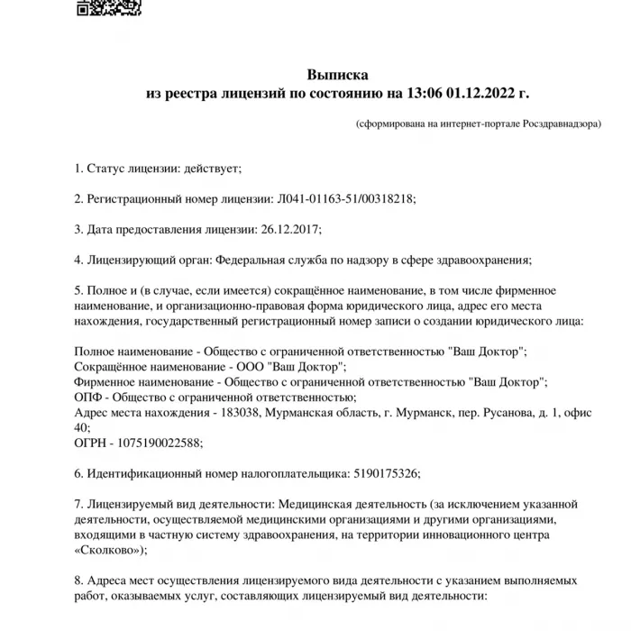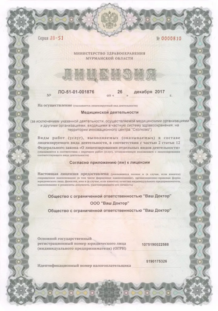 Указаны цены на самые востребованные услуги. Вы можете обслуживаться по полису ДМС, оплачивать отдельно каждый визит, заключить договор на годовую медицинскую программу или внести депозит и получать услуги со скидкой. В выходные и праздничные дни клиника оставляет за собой право взимать доплату согласно действующего прейскуранта. Услуги оказываются на основании заключенного договора.*